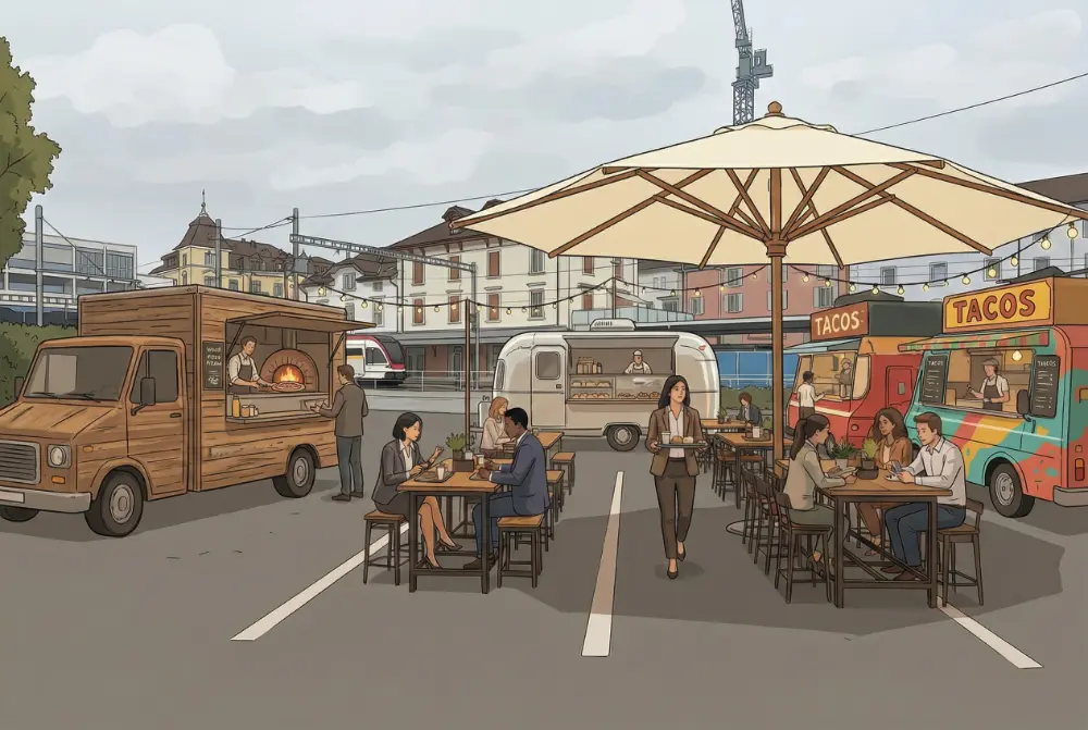 Das Südi Areal befindet sich in einer Phase der Transformation. In den kommenden Jahren werden einzelne Bereiche weiterentwickelt, gebaut und umgestaltet. Ein Street-Food-Konzept mit mobilen Food Trucks bietet dafür eine besonders flexible Lösung.